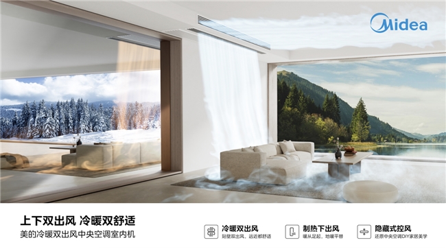 在技术层面,领航者4代做了三层布局,首先基于通过国际领先认证的超低频稳态技术,实现压缩机在低负荷工况下长时间低噪运行不启停。其次,连续喷气增焓技术同样关键,实现全周期、不间断地向压缩机补气,并依托全液冷分区热管理2.0以及双组份隔音技术,在48℃高温制冷和-7℃低温制热下,空调依然保持100%的输出能力不衰减。如果说压缩机层面解决的是“性能强、低频稳”,那么内机的送风方式则直接影响体感舒适度。领航者4代搭载行业首创双出风内机,集成上、下、双出三种模式出风,实现热风下出暖从足起、冷风上出送远14米、上下双出风全域匀温,从看不见的压缩机技术,到最贴近用户的送风体验,美的中央空调始终走在行业的前沿。